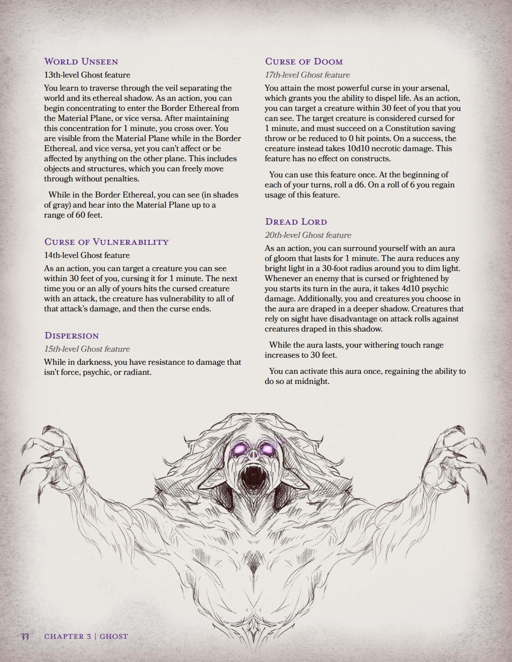 -The Ghost. Give your character a second chance at life as a spectral undead. Seek to complete your unfinished business by utilizing curses and tactical attacks, featuring a toolkit specializing in support and sudden horrifying strikes.